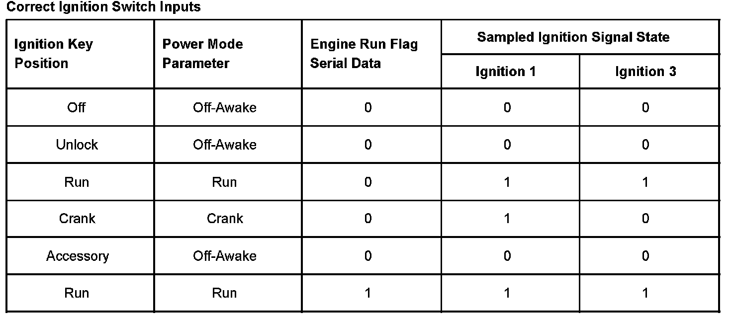 Correct Ignition Switch Inputs: