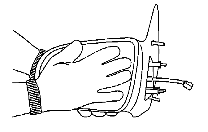 2. Remove the damaged mirror back and glass sub-assembly from the mirror housing by completing the following steps:
