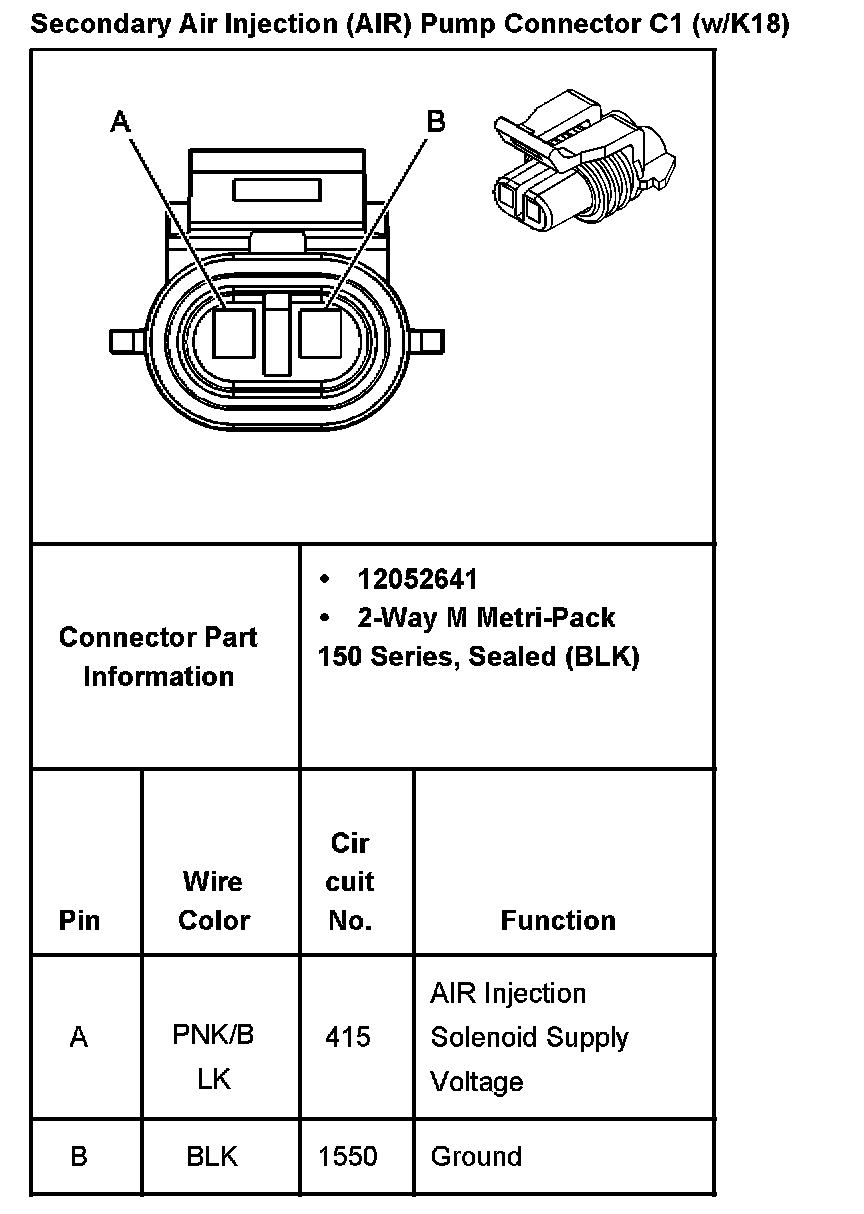 Secondary Air Injection (AIR) Pump Connector C1 (w/K18):