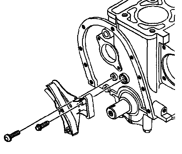 Important: Before removing the timing chain, measure the distance between the hole in the bracket and the unworn surface of the timing chain tensioner shoe.