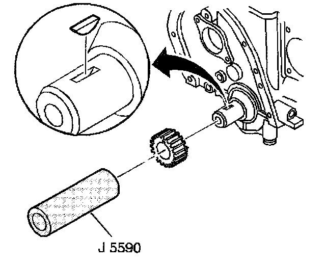 2. Install the crankshaft sprocket using J5590.