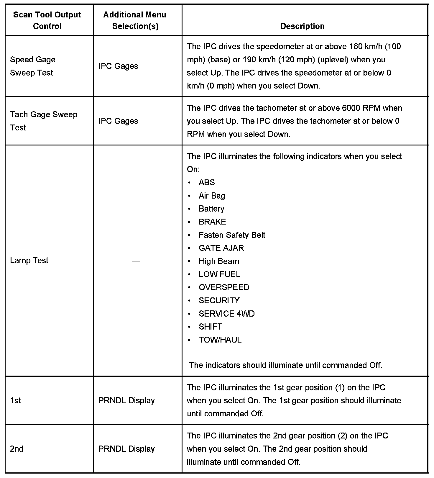Scan Tool Output Controls