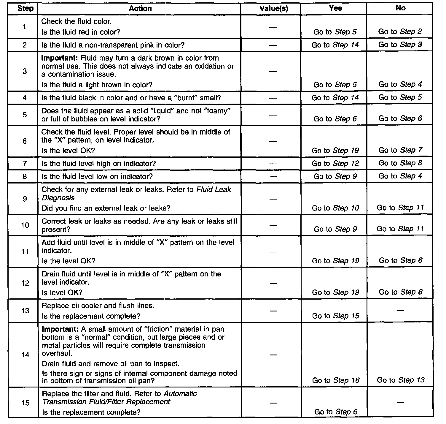 Transmission Fluid Checking ProcedureSteps 1-15: