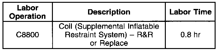 If the diagnosis leads to a damaged SIR coil connection, replace the SIR coil in the steering column. Refer to the Inflatable Restraint Steering Wheel Module Coil Replacement procedure (SI Document ID # 825475).