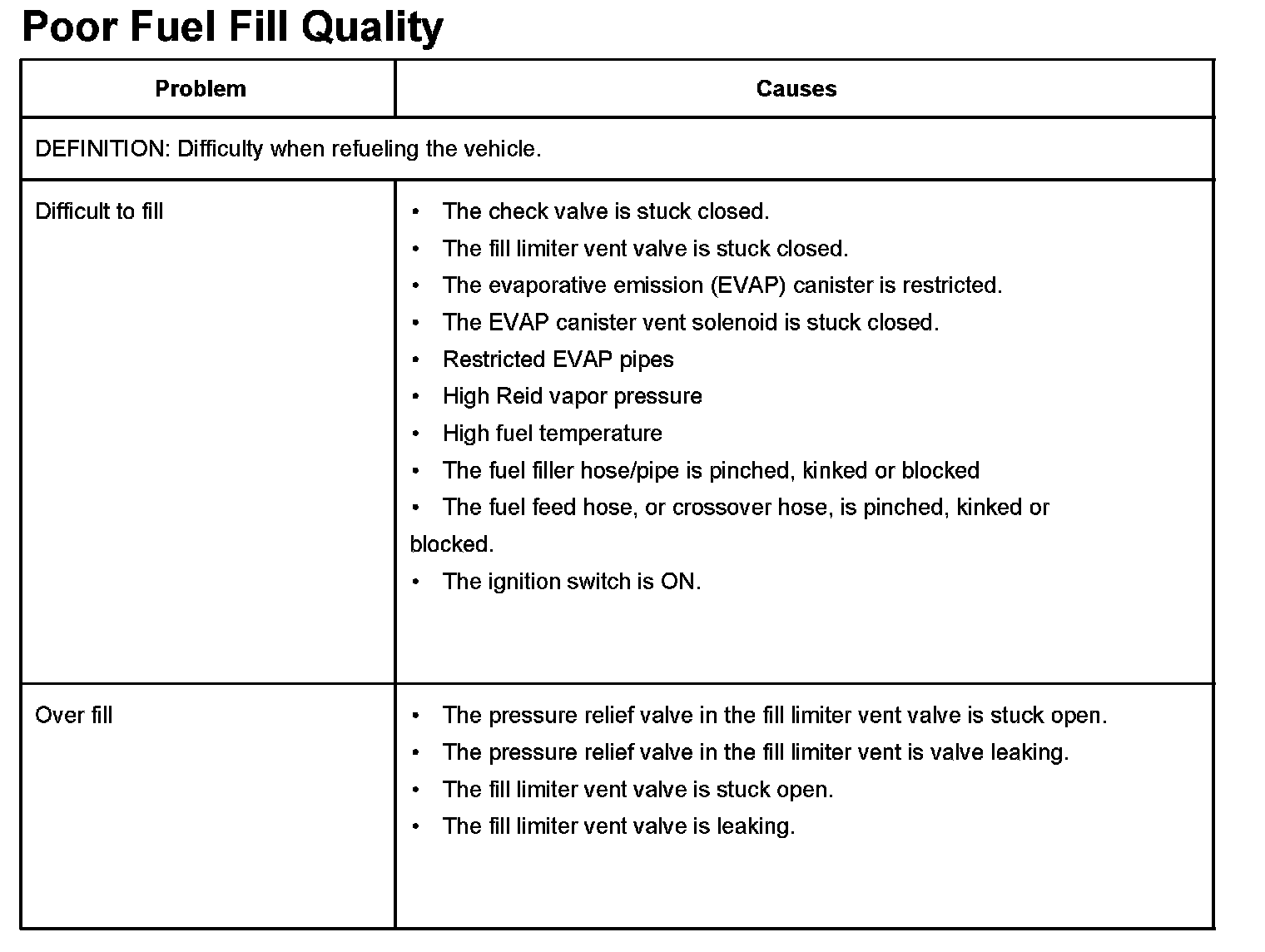 Poor Fuel Fill Quality