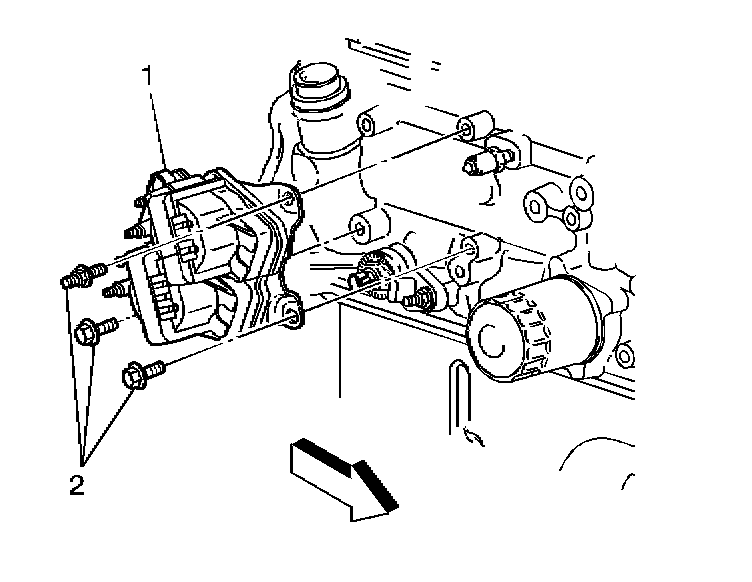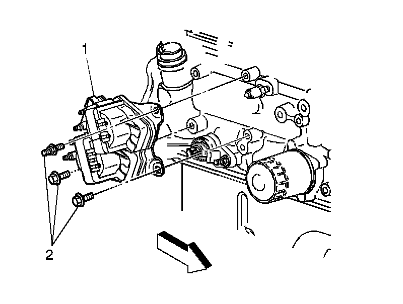 4. Remove the 3 bolts supporting the ICM assembly plate (2).