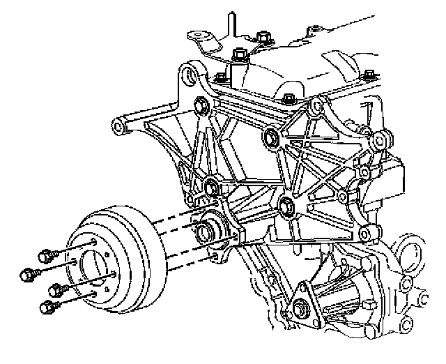 10. Remove the bolts holding the generator mounting bracket to the engine.