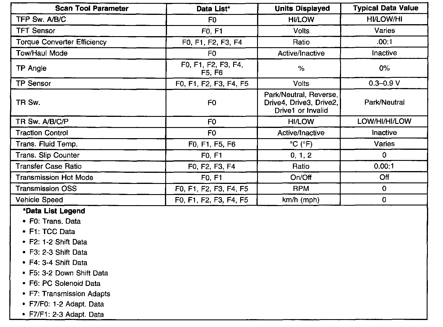 Transmission Scan Tool Data ListPart 1 Of 2:
