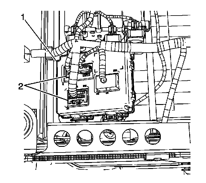 2. Disconnect the 4 electrical connectors (2) from the memory seat control module (1).