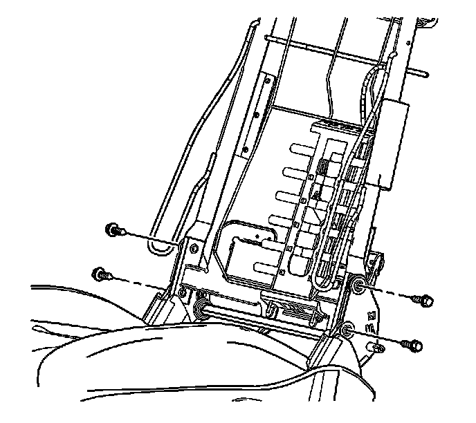 5. Remove the four seat recliner mounting bolts securing the seat back frame to the seat back recliner mechanism.