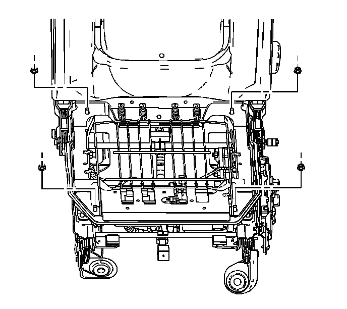 2. Install the 4 nuts that secure the seat cushion frame to the power seat adjuster frame.