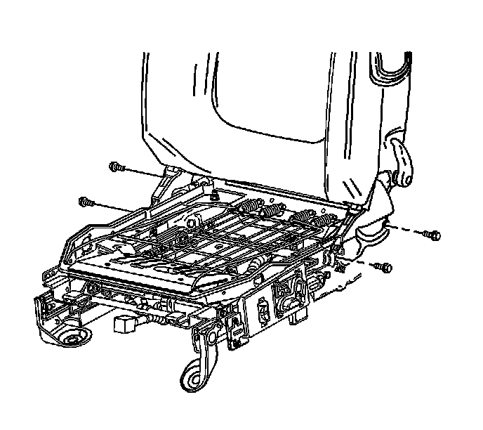 13. Remove the 2 bolts securing the recliner assembly to each side of the seat. Refer to Seat Back Recliner Replacement - Front (Seat Back Recliner Replacement - Front) .