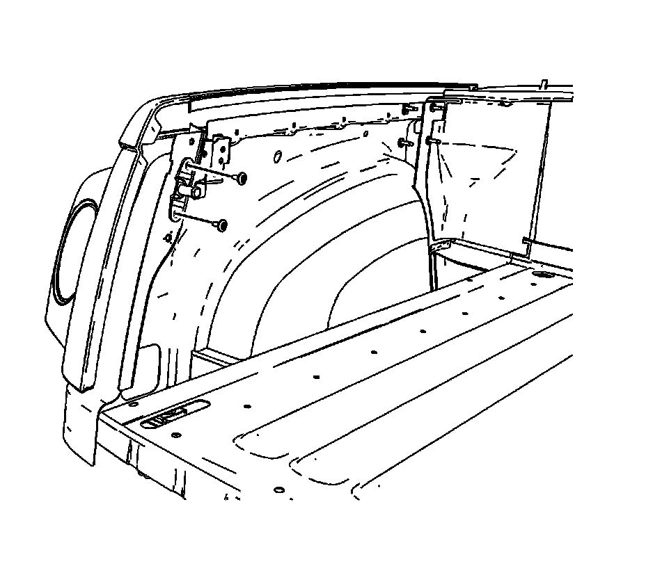 2. Install the endgate lock striker fasteners. Align the lock striker to the marks made upon removal and tighten the fasteners.