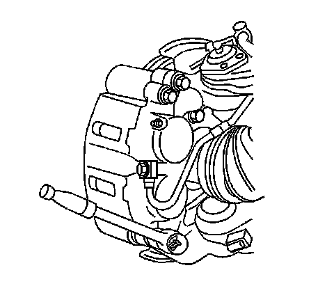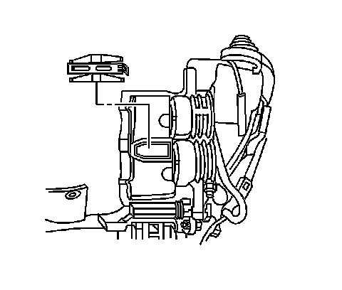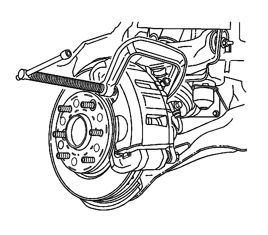 1. Install a large C-clamp over the top of the brake caliper housing and against the back of the outboard brake pad.