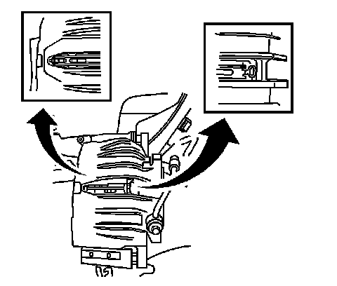 11. Remove the brake pad retaining clips from the brake caliper mounting bracket.