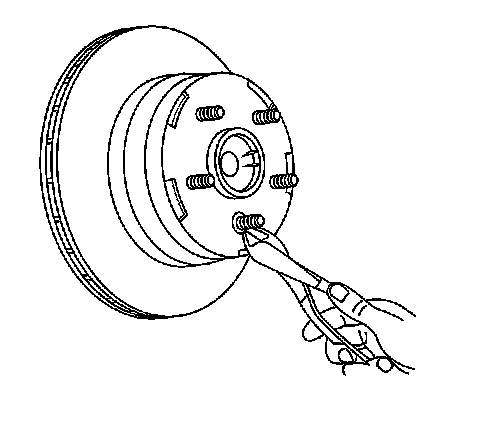 If the brake rotor is not going to be replaced but just removed from the front hub, mark the relationship of the brake rotor and a wheel stud.