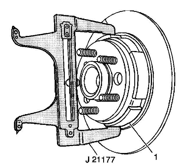 1. Adjust the J 21177-A until it contacts the inside diameter of the rotor (1).