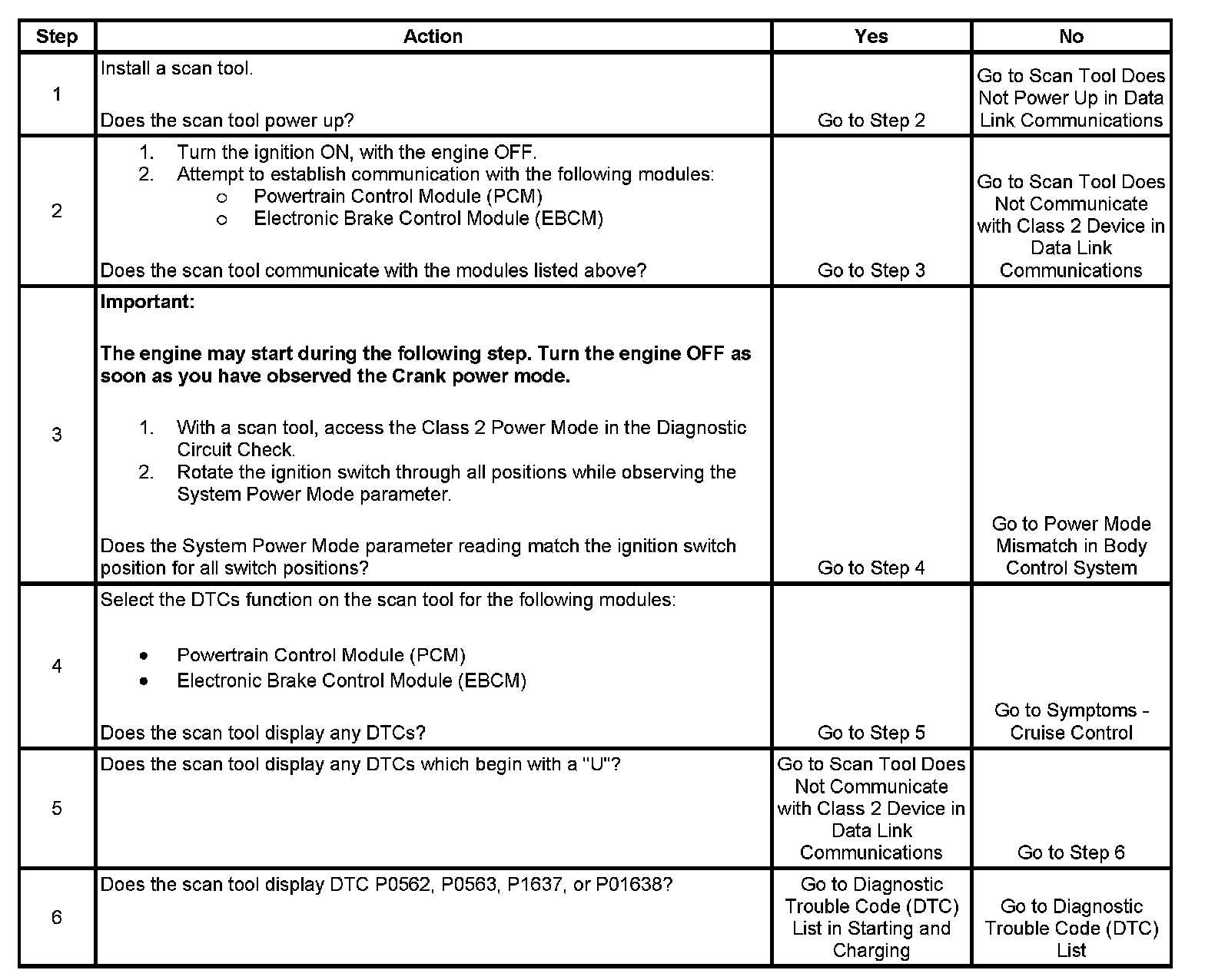 2. Lack of communication may be due to a malfunction in the class 2 serial data circuit. The specified procedure will determine the particular condition.