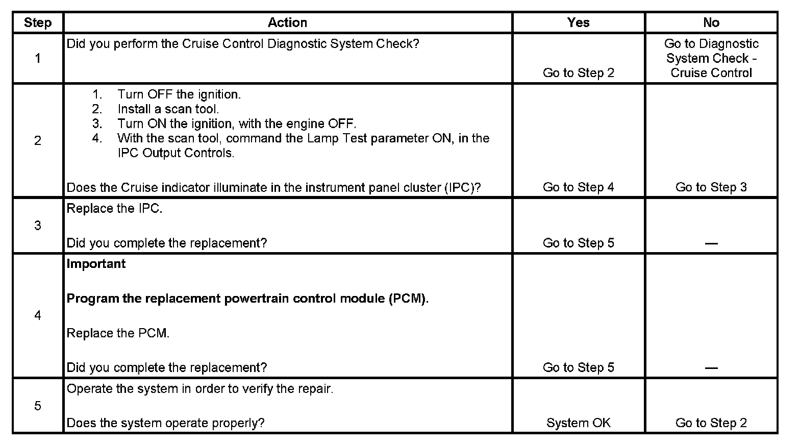 Cruise Control - Indicator Inoperative