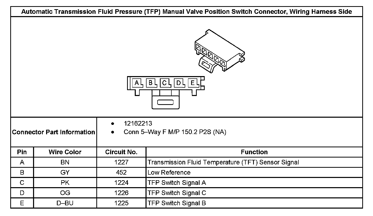Automatic Transmission Fluid Pressure (TFP) Manual Valve Position Switch Connector, Wiring Harness Side: