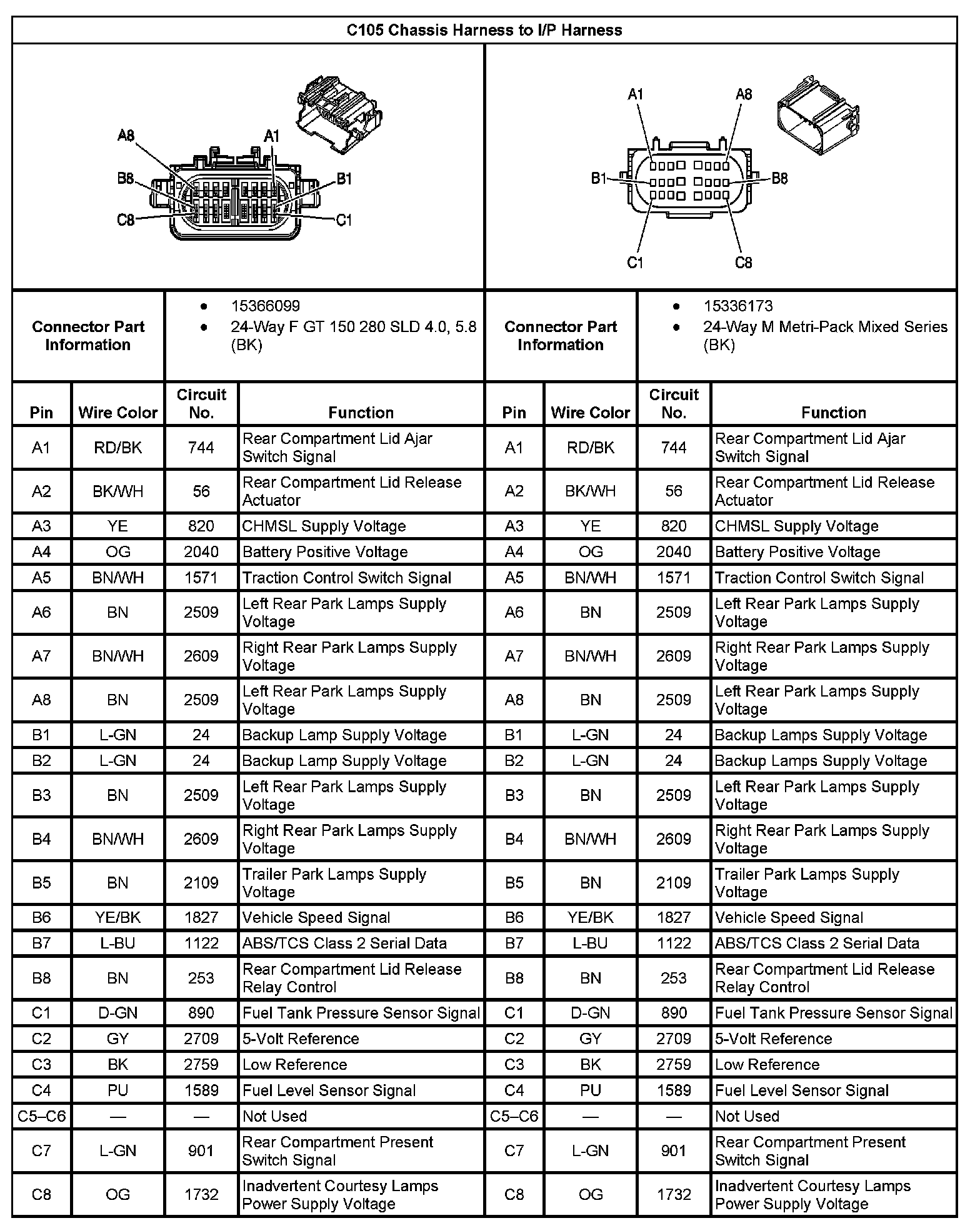 C105 Chassis Harness To I/P Harness: