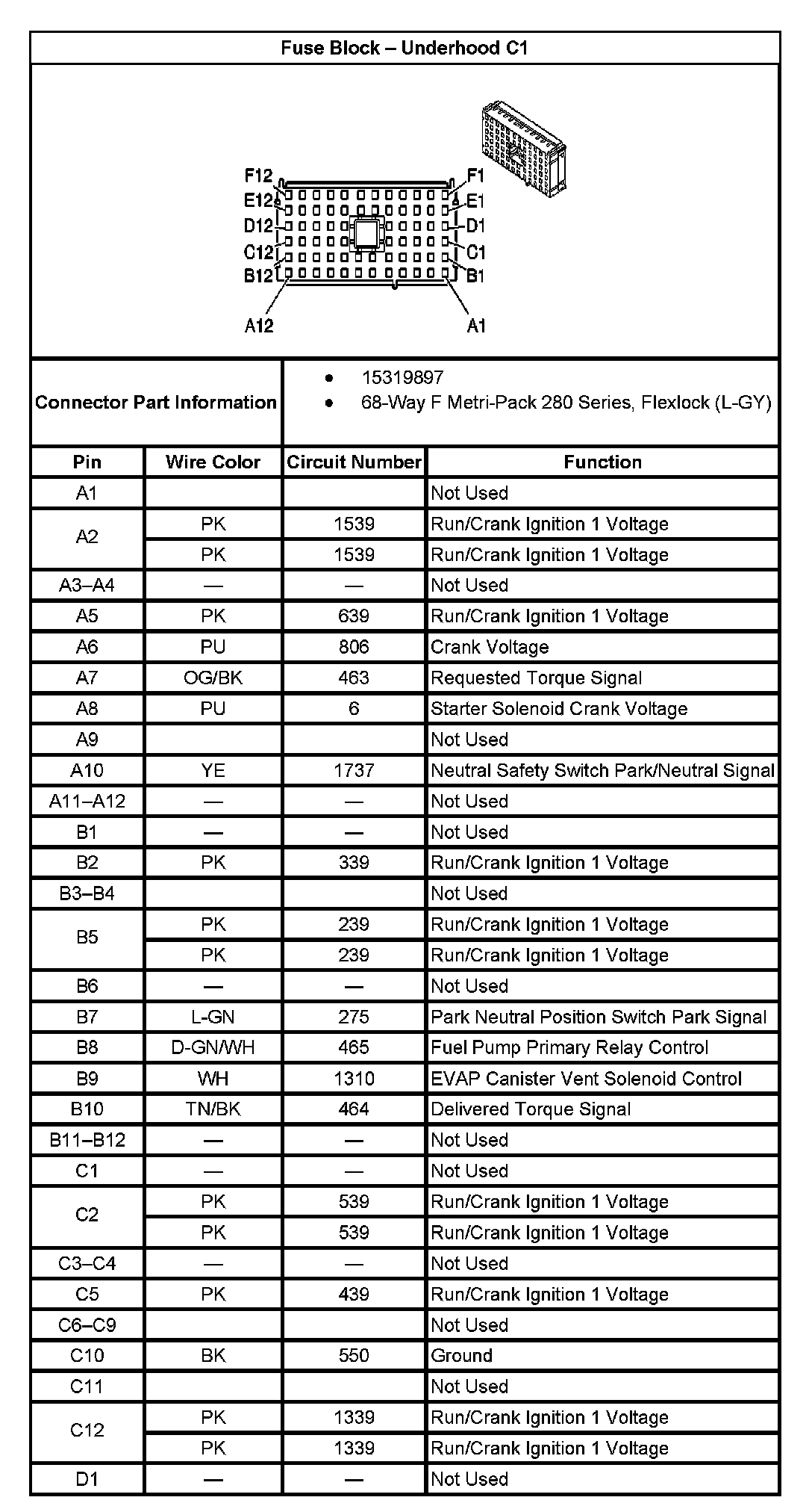 Fuse Block - Underhood C1 (Part 1):