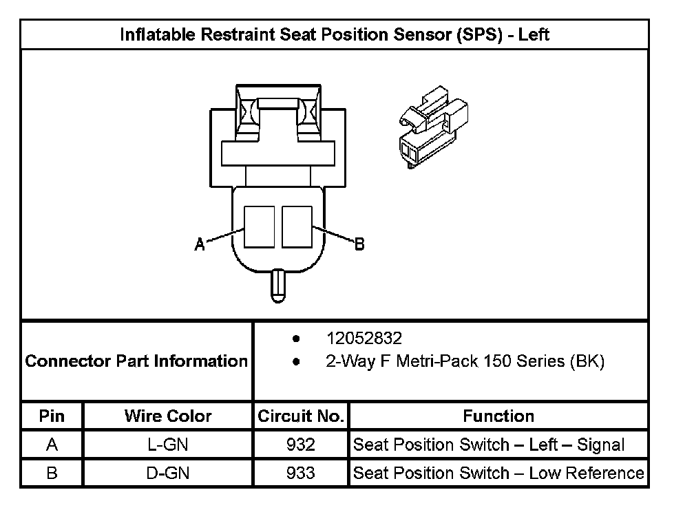 Inflatable Restraint Seat Position Sensor (SPS) - Left: