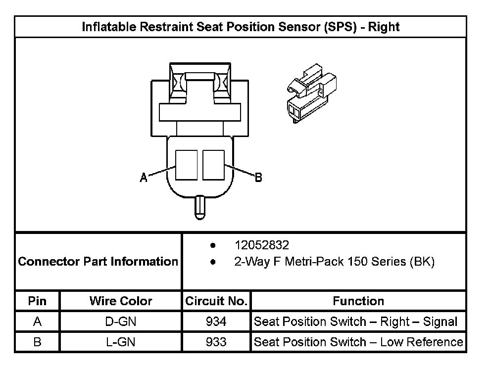 Inflatable Restraint Seat Position Sensor (SPS) - Right: