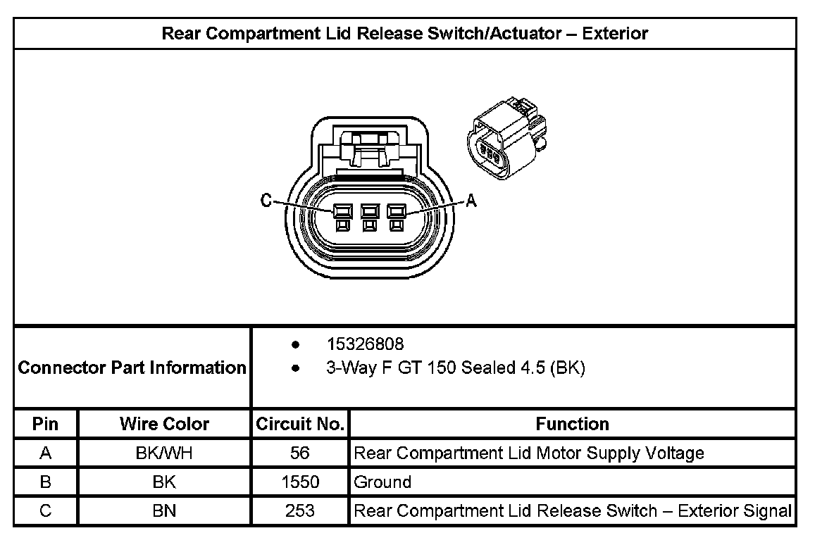 Rear Compartment Lid Release Switch/Actuator - Exterior: