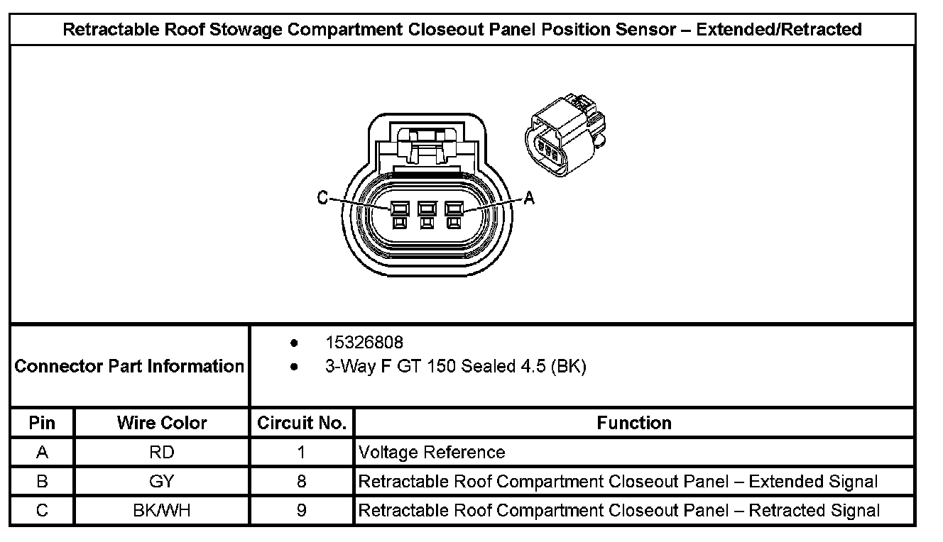 Retractable Roof Stowage Compartment Closeout Panel Position Sensor - Extended/Retracted: