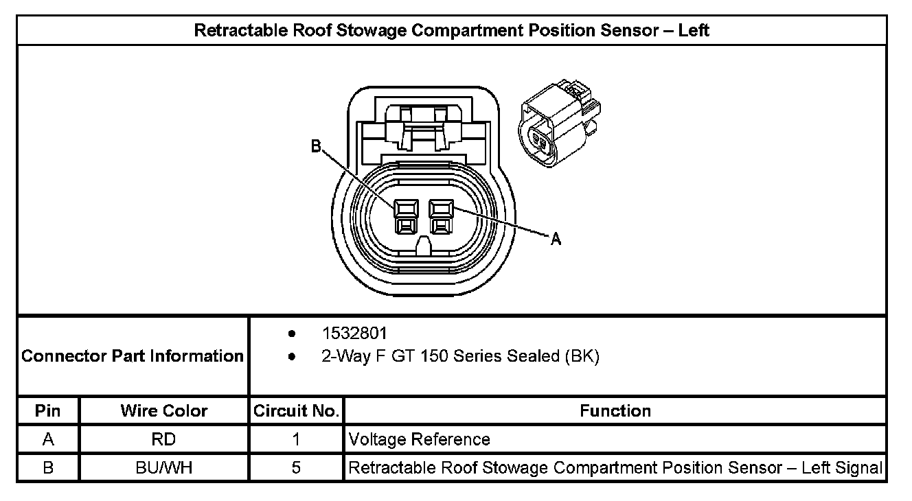 Retractable Roof Stowage Compartment Position Sensor - Left: