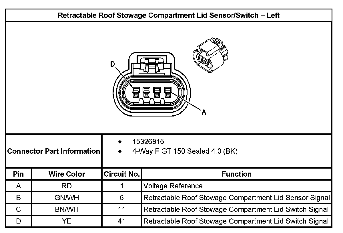 Retractable Roof Stowage Compartment Lid Sensor/Switch - Left:
