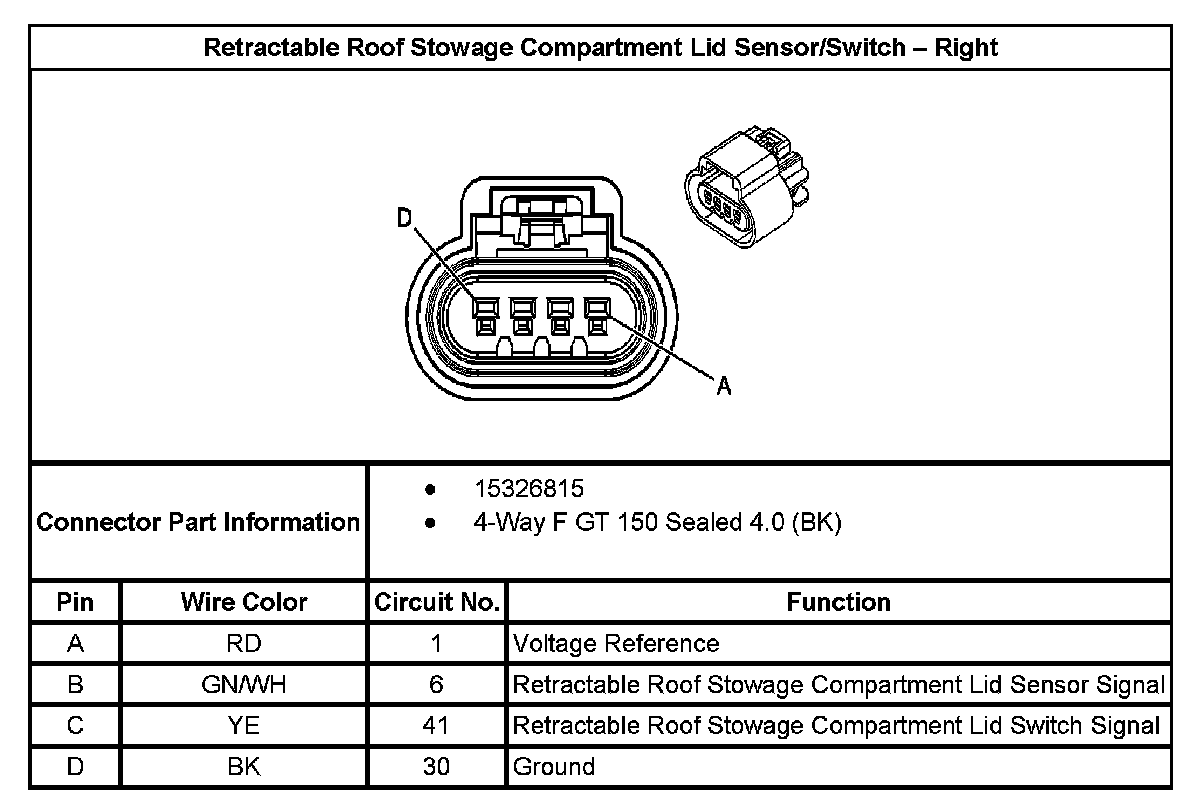Retractable Roof Stowage Compartment Lid Sensor/Switch - Right:
