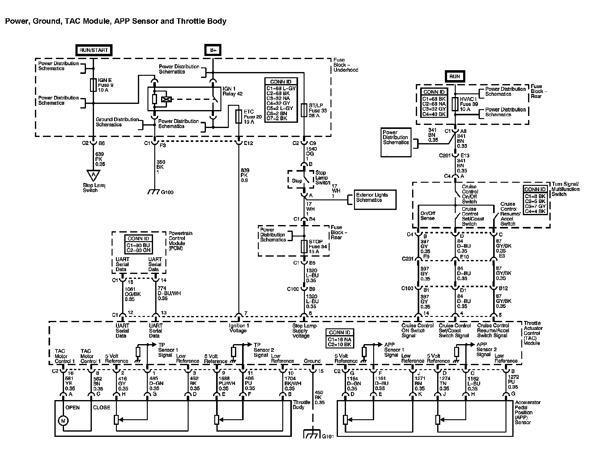 The locations for the Connectors, Grounds, Splices, and Grommets shown within these diagrams can be found via their numbers at Vehicle Locations.