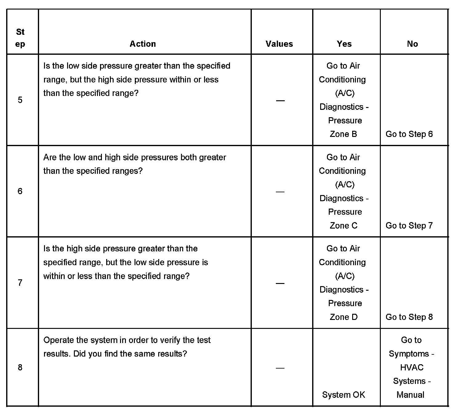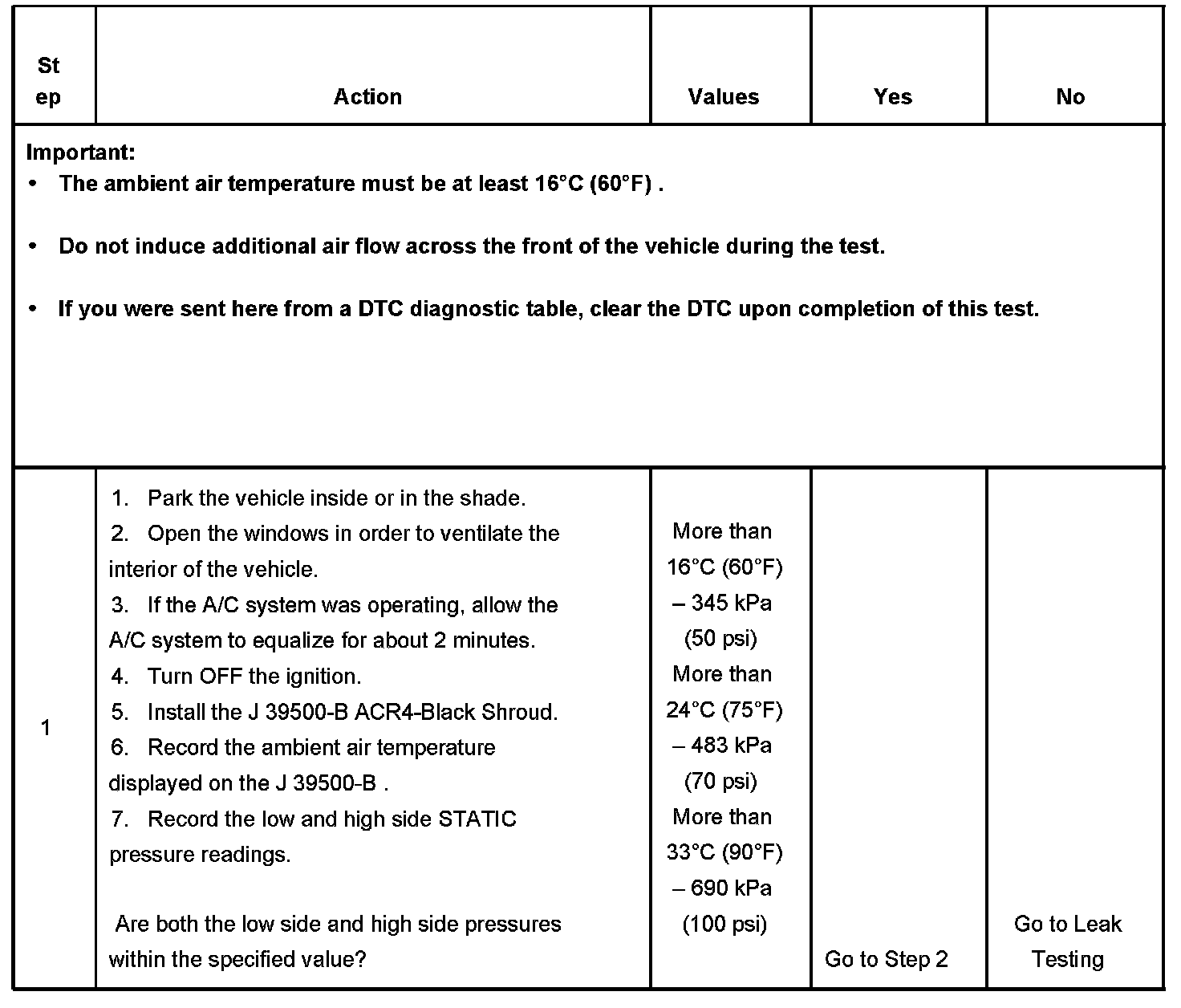 1. This step determines if the A/C system has at least the minimum refrigerant charge required to operate the system without damage.