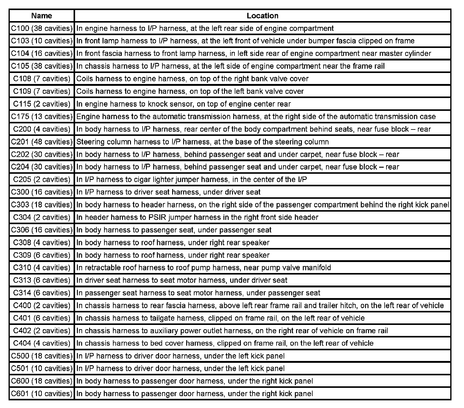 Connector Locations