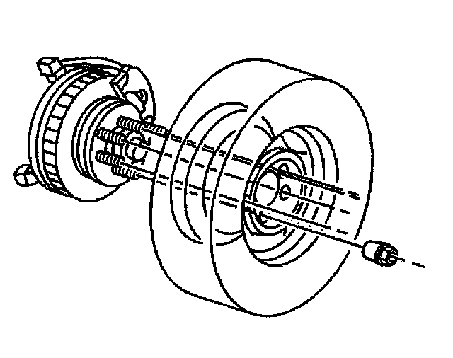 Notice: A torque wrench or J 39544 must be used to ensure that wheel nuts are tightened to specification. Never use lubricants or penetrating fluids on wheel stud, nuts, or mounting surfaces, as this can raise the actual torque on the nut without a corresponding torque reading on the torque wrench. Wheel nuts, studs, and mounting surfaces must be clean and dry. Failure to follow these instructions could result in wheel, nut, and/or stud damage.
