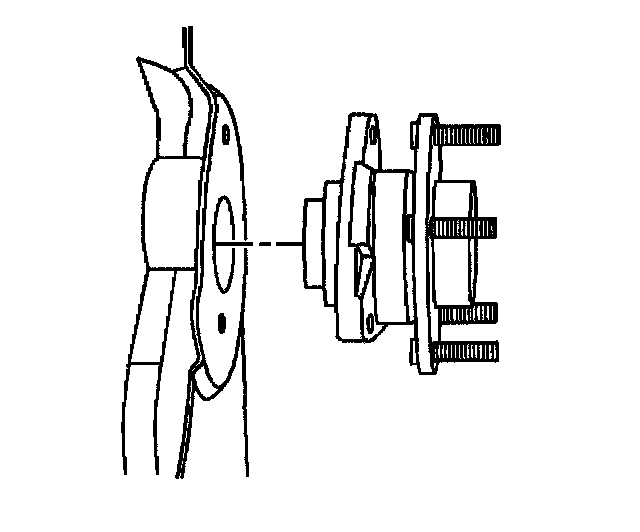 2. Install the wheel hub and bearing to the steering knuckle. Align the threaded holes.