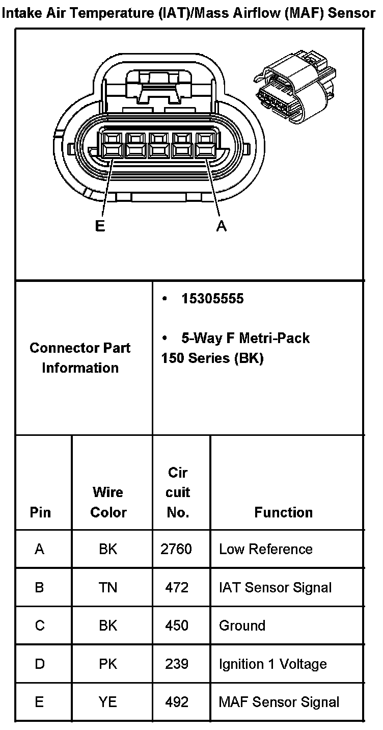 Intake Air Temperature (IAT)/Mass Airflow (MAF) Sensor: