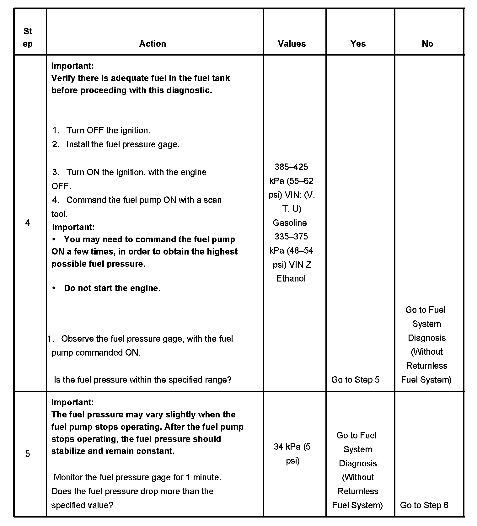 The number below refers to the step number on the diagnostic table.