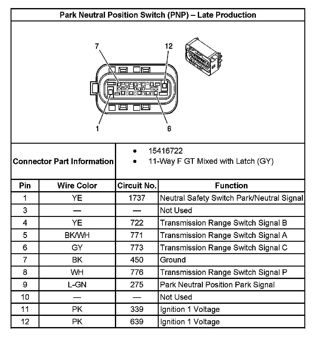 Park Neutral Position Switch (PNP) - Late Production