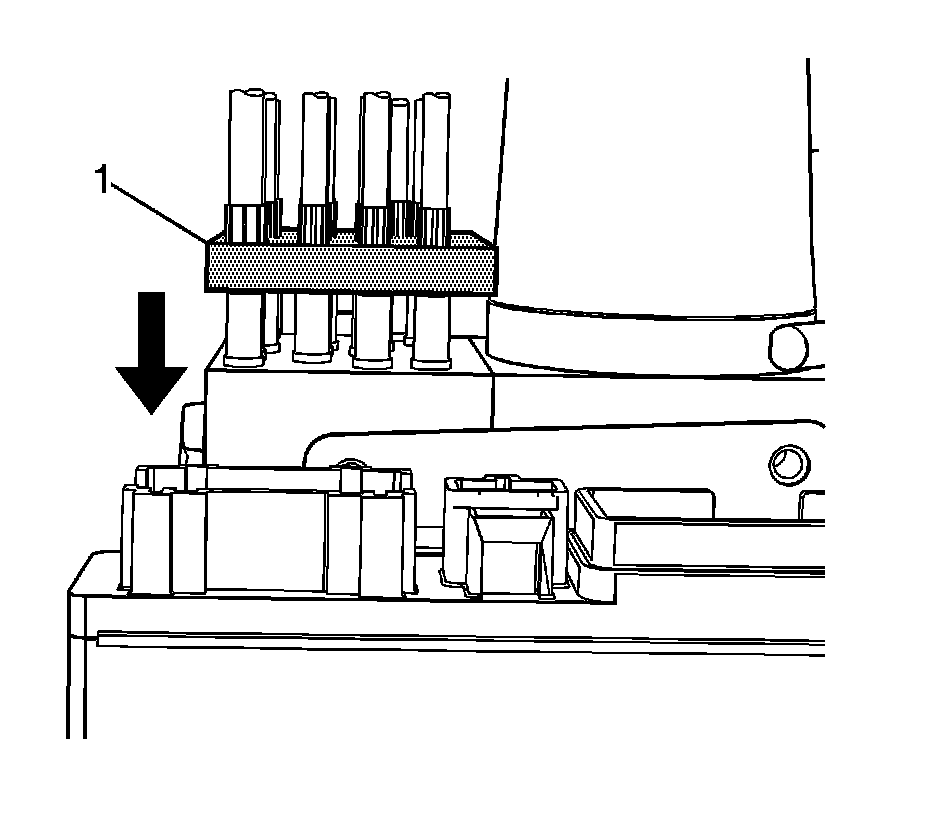 4. Push down on the manifold plate (1) and verify that all of the cylinder hoses are seated properly.