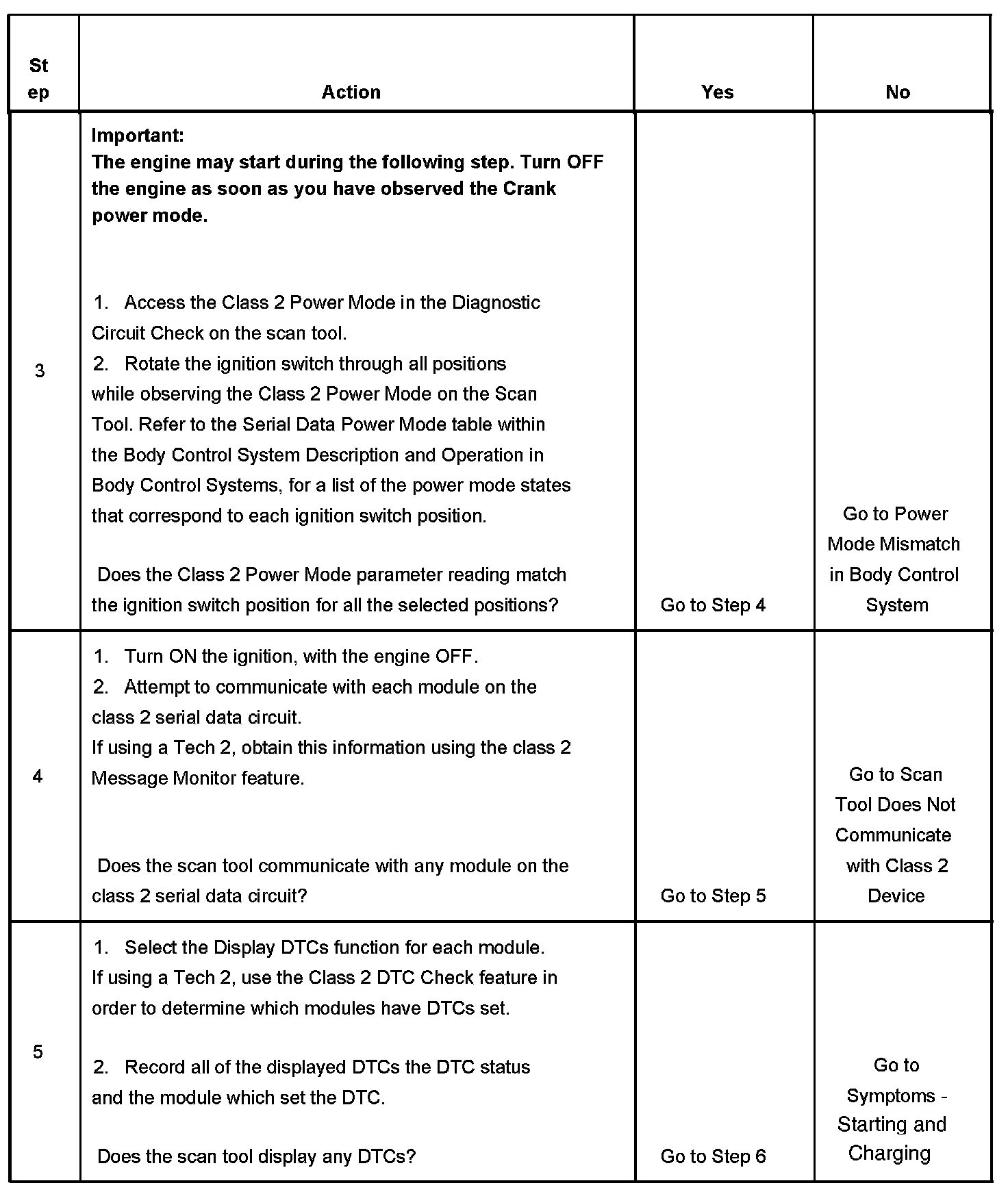 4. Lack of communication may be due to a partial malfunction of the class 2 serial data circuit or due to a total malfunction of the class 2 serial data circuit.