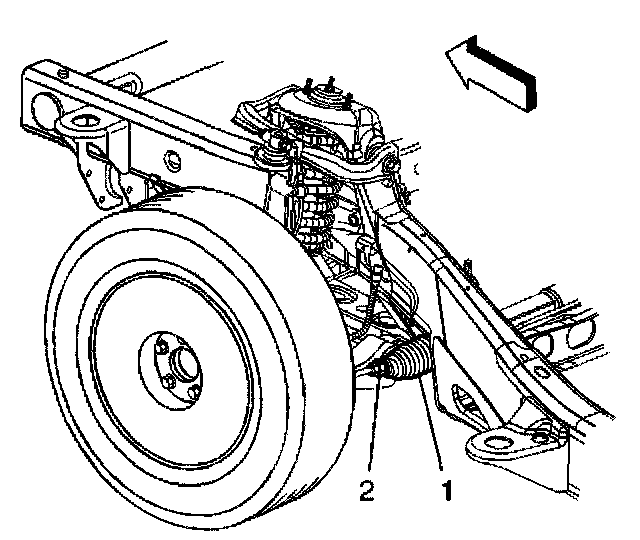 1. Loosen the jam nut on the outer tie rod (2).