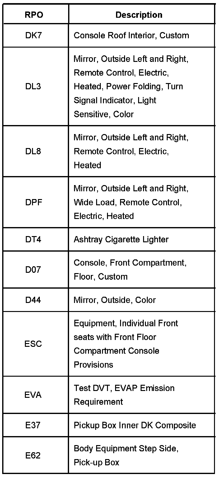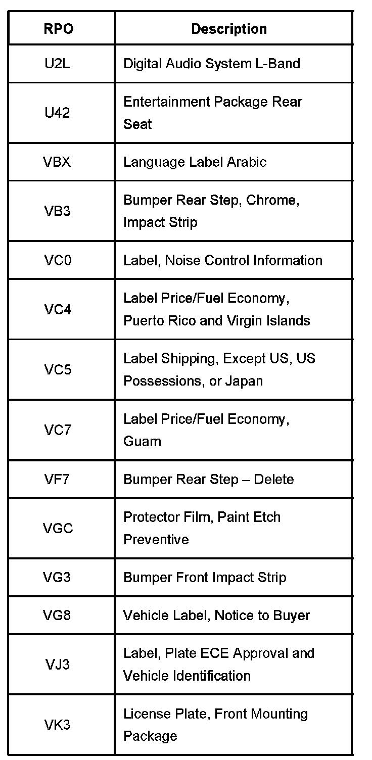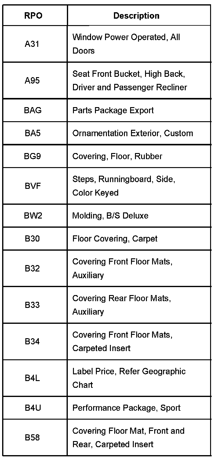 RPO Code List Part 1: