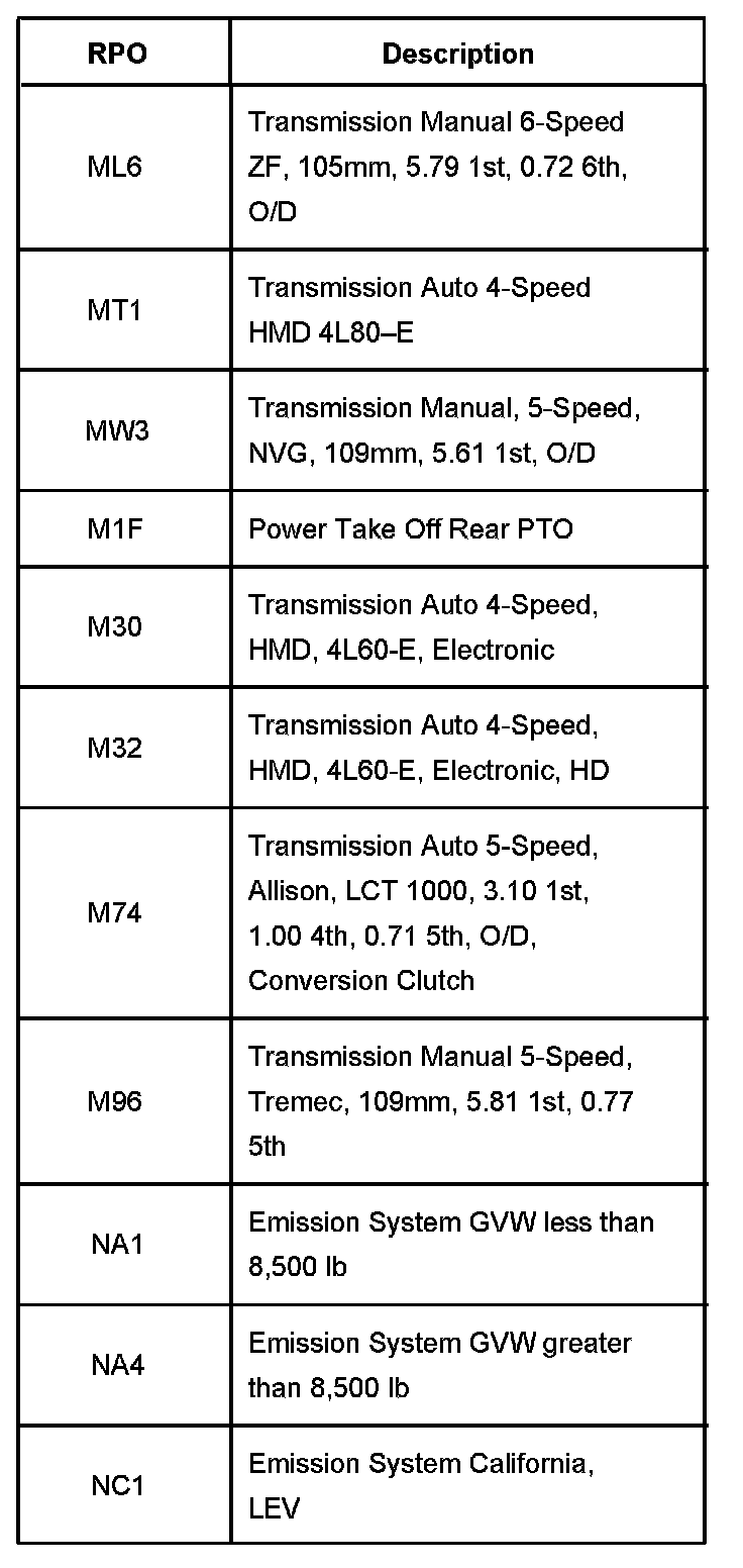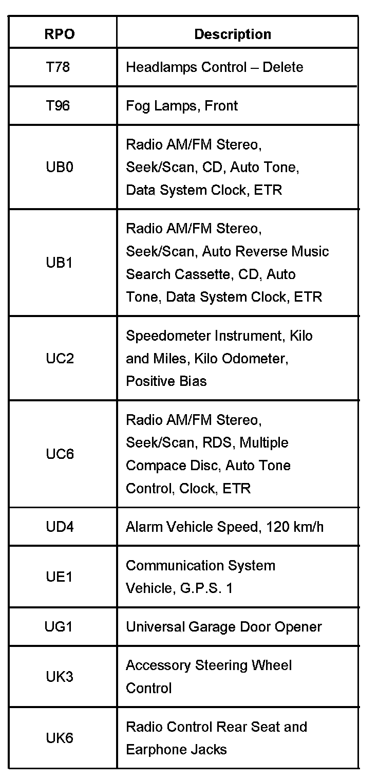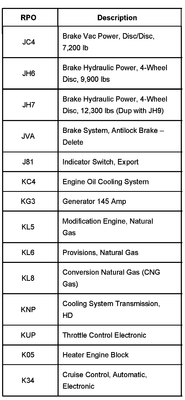 RPO Code List Part 1: