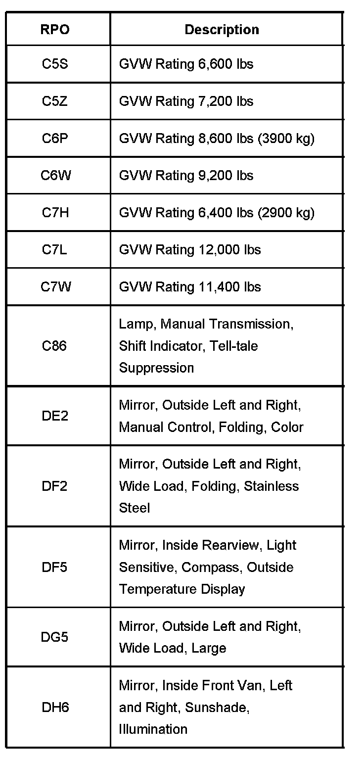 RPO Codes