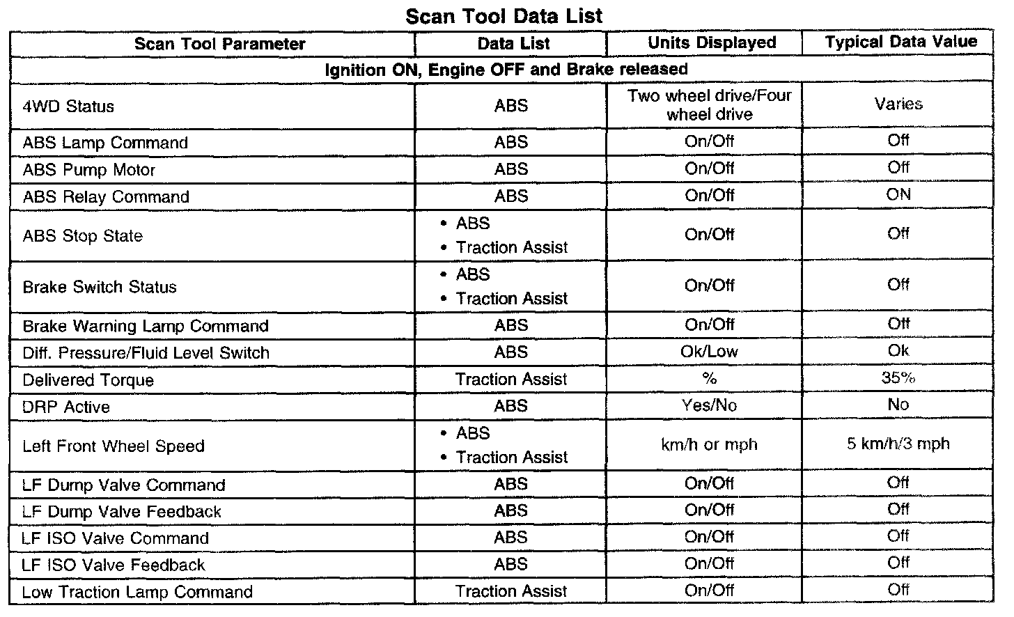 Scan Tool Data List