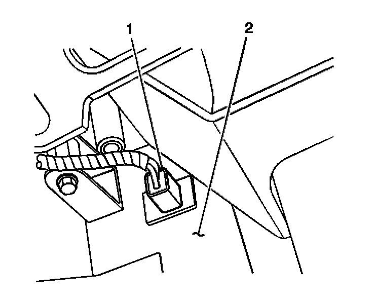 1. Install the lower left air temperature sensor (1) to the HVAC module (2).