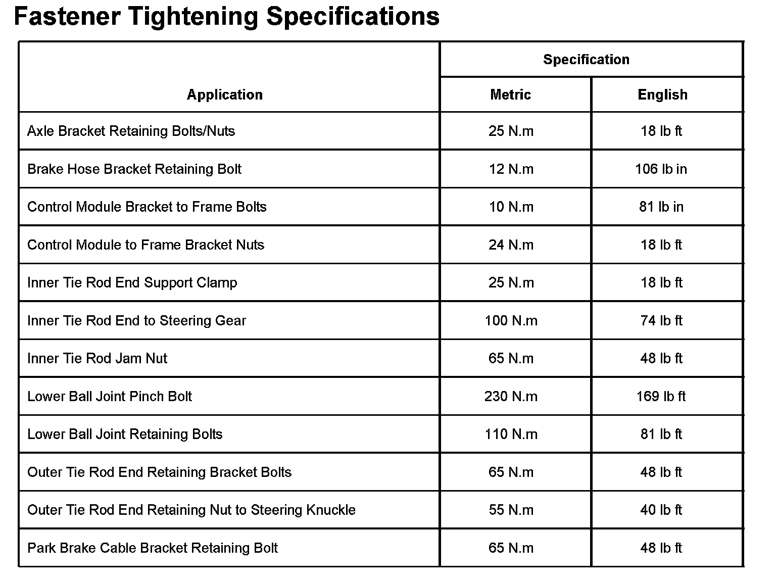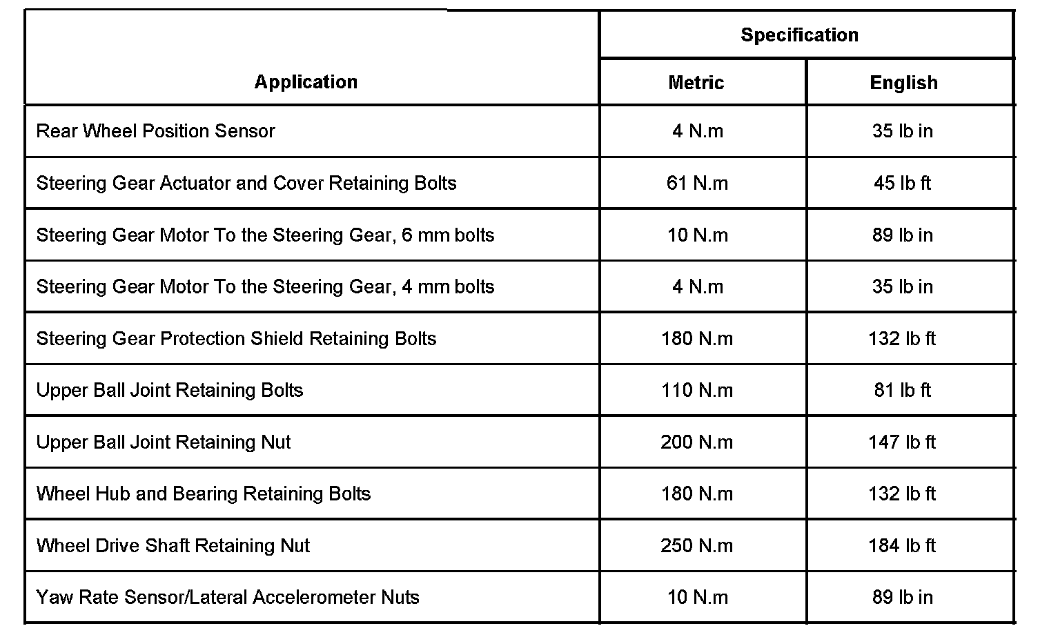 Rear Wheel Steering Tightening Specifications